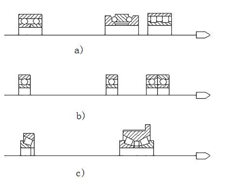 目前數(shù)控車方機(jī)床主軸軸承的配置形式主要有三種,如圖1所示。